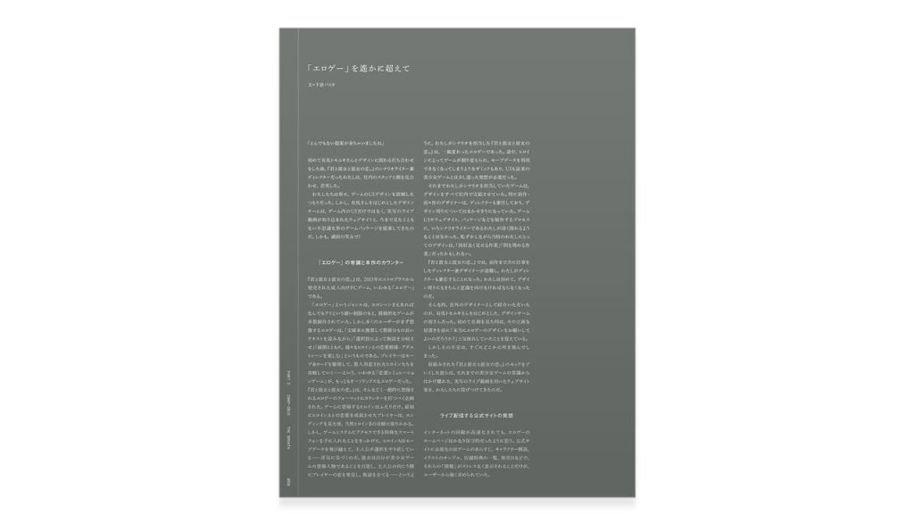 Tomoyuki Arima (of Arima Design Institute at the Nippon Design Center) has kept real-time pace with digital innovation since 2000. He has no specialized design education from any art university. He absorbed games and the internet through computers, discovered manga and anime culture on the web, learned graphic design through music, met people through dojin design, and continuously expanded his professional domain through interaction. Web, books, packaging, branding, animation, games, exhibitions—he has constantly explored for the connections between technology and people, and has made liberal use of applications as though they were readily-available tools.